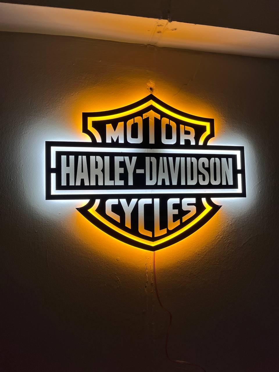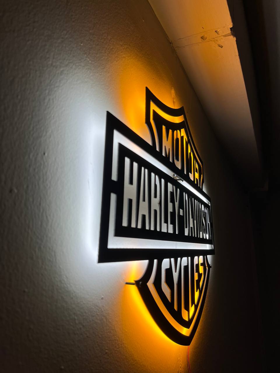 Add a stunning touch to your space with the handmade Harley Davidson LED Wall Decor. Made from durable metal, this artistic wall decor is designed for Harley enthusiasts, motorcycle lovers, and anyone seeking unique man cave decor. It makes an unforgettable gift. Perfect for your living room, bedroom, office, garage, or bar area.